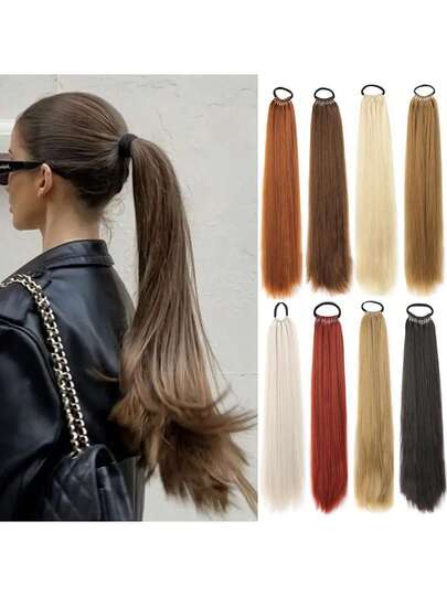 24 Inch Synthetic Ponytail Hair Extensions, Black Natural Braided Ponytail Wig, Long Straight Hair, Elastic Band Fastener, For Women - Multicolor - View 19