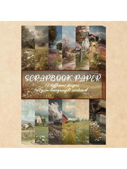 24PCS Vintage Wild Grass And Wood House Landscape Scrapbook Paper, 6.7*4.7inch Single Side High Quality 160gsm Scrapbooking Creative Material Paper For Bullet Diary, Trash Magazine, Greeting Card, Photo Album And Crafts - Multicolor - View 1