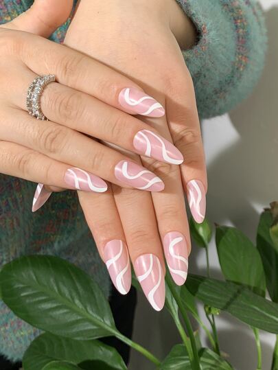 24Pcs Long Stiletto Fake Nail & 1Pc Nail File & 1Sheet Tape Press On Nails Nail Supplies Nails - Pink - View 1