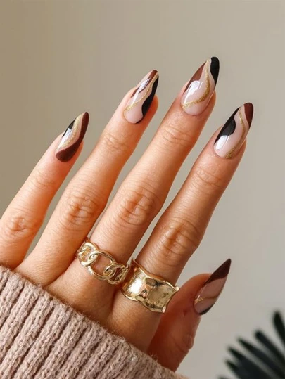 24pcs Long Almond Color Block Fake Nail & 1pc Nail File & 1sheet Tape - Multicolor - View 1