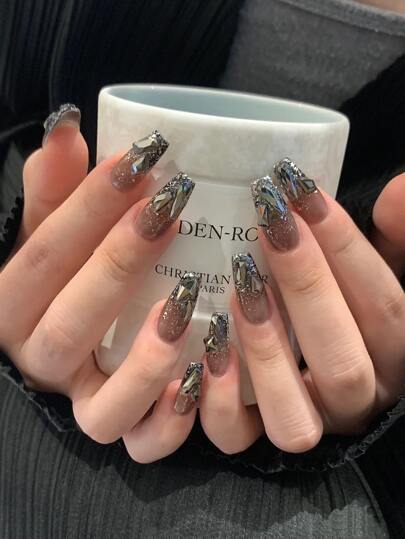 30Pcs Mini Coffin-Shaped Dark Star Sequin Nail Art Sticker Set, Includes 1Pc Gel Top Coat And 1Pc Nail Buffer Block Press On Nails Nail Supplies Nails - Multicolor - View 1