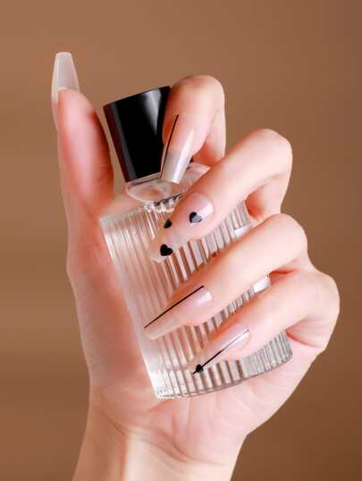 24pcs Long Coffin Heart & Line Pattern Fake Nail & 1pc Nail File & 1sheet Tape - Multicolor - View 1