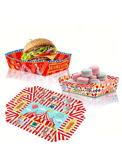 24pcs Set - Carnival Circus Clown Lion Party Snack Tray Uncovered Paper Box Tray, Party Festival Decoration, Ice Cream Shop Cake Shop Snack Street Home Office Coffee Shop Paper Box - Multicolor - View 1