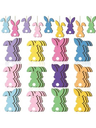 24pcs/Set,Colorful Easter Bunny Wooden Hanging Decorations - Rabbit-Shaped Decorations, Perfect For Spring And Easter Tree Decorations, Playful Designs Of Festival Decorations, Rabbit Accessories - Multicolor - View 1