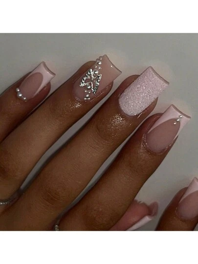 24pcs/Set Medium-Long 3d Butterfly Design Press On False Nails With Jelly Glue & Nail File Suitable For Women And Girls - Multicolor - View 1
