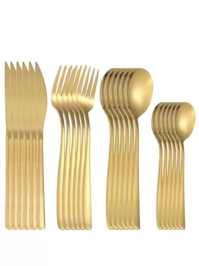 24pcs Stainless Steel Flatware Set,Kitchen,Christmas Gift - Gold - View 1