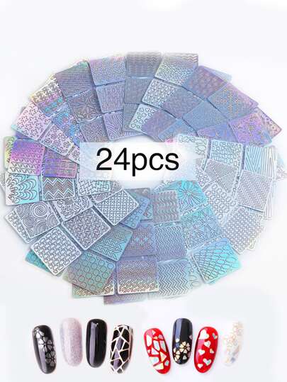 24sheets Geometric Pattern Hollow Out Nail Art Sticker Nail Stickers DIY - Multicolor - View 1