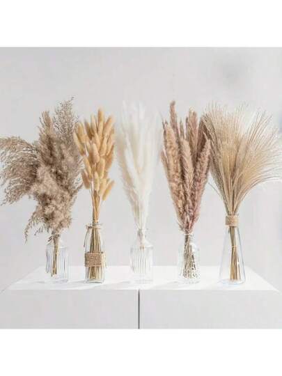 25/50/100/150/200pcs Dried Reed Flowers Decor | Bohemian Style Dried Floral Centerpieces, Suitable For Weddings And Rustic Style Tabletop Decoration - Brown - View 1