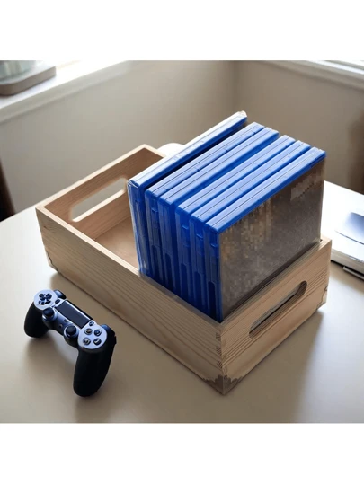 25 Capacity Wooden Game Disc Storage Rack, Fit For PlayStation 5/4 Game Discs, Functional Tabletop Organizer For PlayStation Game Cartridges, CD/DVD Holder - Beige - View 1