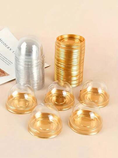25pcs Golden Base Transparent Dome Baking Containers, Suitable For Egg Tarts, Mousse Cakes, Pastries, Bakery Shops, Holiday Parties - Multicolor - View 1
