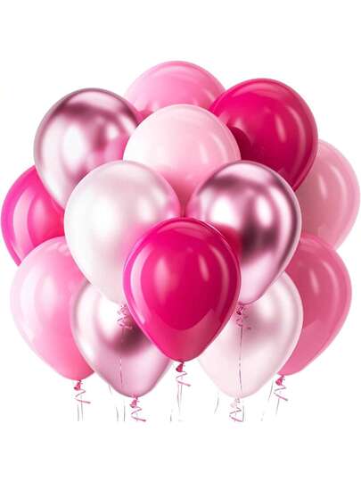 28pcs/Set 10-Inch Metallic Red, Macaron Pink And Burgundy Latex Balloons, Suitable For Birthday, Wedding, Valentine's Day, Christmas, New Year, Opening Ceremony, Home Decor, Balloon Arrangement, Balloon Party, Photography Props, Photo Booth Background, Still Life Decoration - Pink - View 1