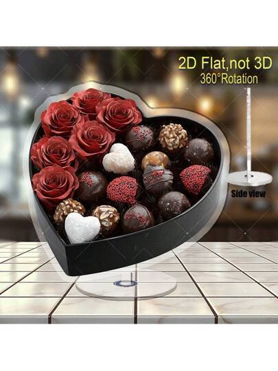 2D Acrylic Rotating Figurine - (Non-3D) Black Heart-Shaped Box Containing Red Rose And Assorted Chocolates, 360° Rotating Base, Indoor/Outdoor Romantic Gift For Anniversary, Valentine's Day, Home Decor, Elegant Design, High-Quality, Durable Material, Display - Multicolor - View 7