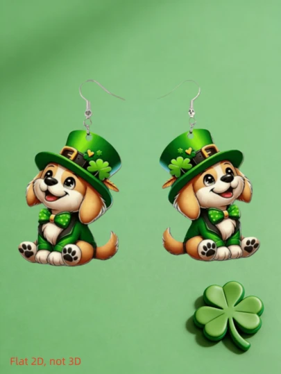 2D Adorable Puppy Pendant Earrings, Irish Holiday Clover Acrylic Earrings, Dog Lover Gift, Classic Holiday Party Gift, Birthday Gift, Girlfriend Gift - Puppy - View 1