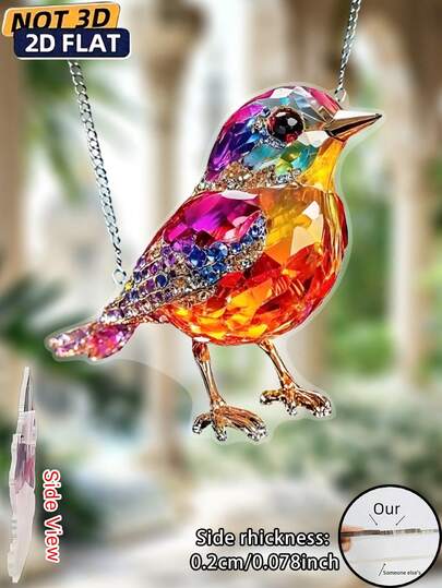2D Fat Robin Bird Acrylic Statue Garden Sunshine Catcher - Hanging Window Decor, Sun Catcher, Wall Art, Home Decor, Suitable For Porch, Wall, Various Rooms, Ideal Gift For Bird Lovers And Families, All Seasons - Colorful - View 7
