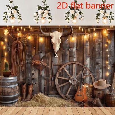 2D Flat 1 Western Cowboy Background Flag, Made Of Polyester, Suitable For Rustic Farmhouse Cowboy Themed Wall Decor, Available In Multiple Sizes, Suitable For Housewarming, Anniversary, General Celebration Events And Party Backdrops. - Multicolor - View 5