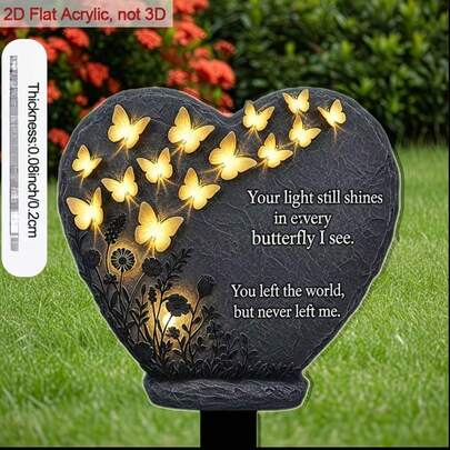 2D Flat, 1pc Heart-Shaped Stone With Garden Marker - Flat Acrylic Outdoor/Decor Accent, Suitable For Soil, Patio, Flower Beds - Can Be Installed As Ground Stake, For Plants, Landscaping, Weddings And Decoration - Stylish Gift, 2D Flat - A - View 1