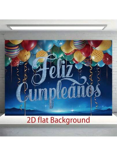 2D Flat 1pc Spanish Happy Birthday Party Banner - "Feliz Cumpleaños" Balloon Design, Polyester, For Home And Wall Decor, Multi-Purpose All-Season Use, Birthday Party Decoration - 1PCS - View 1