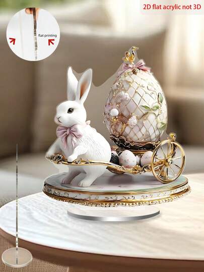 2D Flat A Charming Rabbit And Easter Egg Acrylic 2D Flat Art Decoration Style, Featuring A Transparent And Clear Easter Bunny And Egg Tabletop Decor, No Power Required, Suitable For Birthdays, Graduations, And Festive Celebrations. - Multicolor - View 1
