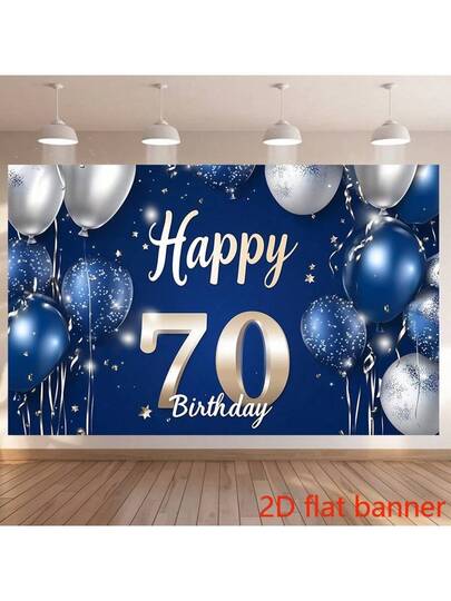 2D Flat Banner 1 Elegant Blue And Silver 70th Birthday Party Banner With Spotlight Background For Holiday Gatherings, Featuring Balloon Stars And Snowflake Design, Perfect For Home Or Room Decoration - 1 - View 4