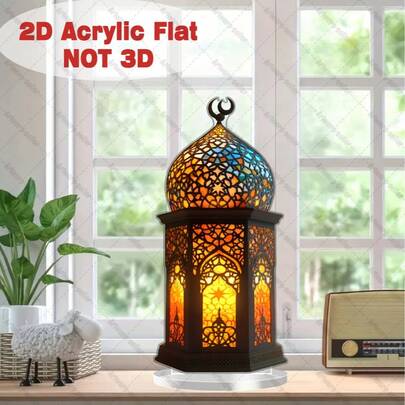 2D Flat, Elegant 2D Acrylic Mosque Lantern - Traditional Islamic Church Crystal Tabletop Decor, Blue & Orange Stained Glass Design, Perfect For Eid Celebrations In Home, Office, Or Bedroom - Ideal Holiday Gift For Friends - Multicolor - View 5