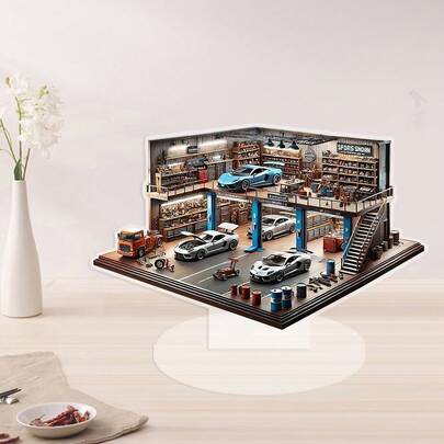 2D Flat, Vintage-Style Car Repair Shop Acrylic Desk Ornament - Perfect For Home, Office Decor & Holiday Gifts, 2D, Valentines Day, Mothers Day - Clear - View 1