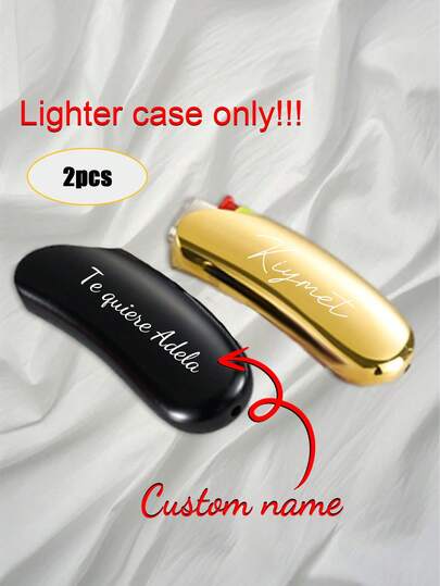 2PCS Personalized Name BIC Lighter Case Sheath Holder Custom Engraving Groomsman Father's Day Gift For Dad Men Boyfriend Cigar Smoker Birthday J5 - Black+Gold - View 1