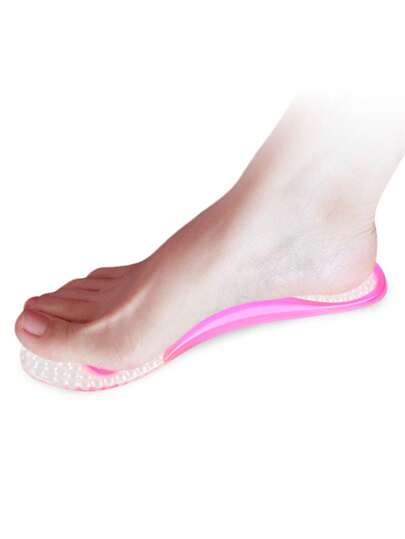 2PCS Two-Color Seven-Point Cushion PU High Heels Thickened Arch Support Insoles Transparent Ladies Flat Feet Heart Pads - Pink - View 1