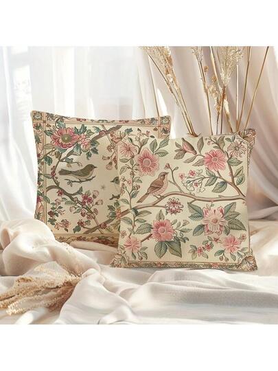 2Pcs Chinoiserie Single-Side Print Throw Pillow Covers - 17.7*17.7 Inches, Exquisite Flowers & Birds Design, Decorative Cushion Covers For Sofa, Bedroom, Office, Car & Farmhouse, Stylish Home Decor Accents, Machine Washable With Zipper, No Pillow Cores Included - Multicolor - View 1