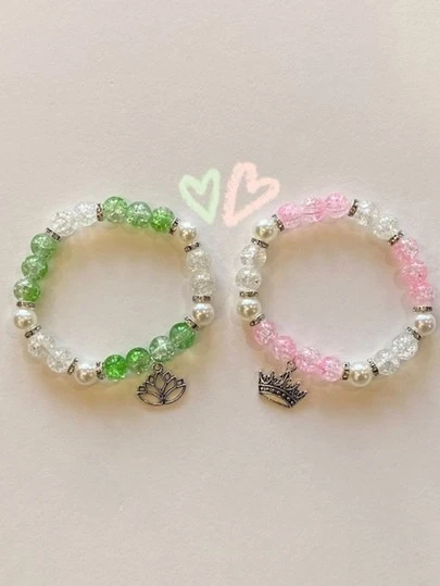 2Pcs Friendship Bracelets With Lotus &Crown Charm Best Friend Bff Matching Bracelets For Couples Women Men - Multicolor - View 1