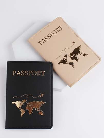 2Pcs Metallic Letter Graphic Passport Case Passport Holder Passport Wallet School Supplies School Stuff for School for Student Passport Cover for Travel for Flight For Back to School Travel Accessories Passport Bag for Holiday Vacation for Women and Men Travel Essentials Passport Pouch Cruise Essentials - Multicolor - View 1