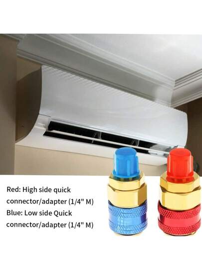 2Pcs Premium Brass AC R134A Quick Coupler Connector Adapters - High-Low Pressure Manifold Fittings For Air Conditioning Refrigerant - Durable, Corrosion-Resistant, And Easy To Install - Multicolor - View 1