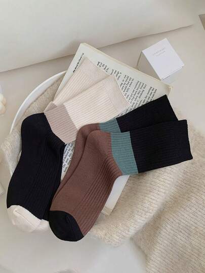 2pairs Randomly Dispatched Women's Knee-High Socks Made Of Colorblock Cashmere With Drawstring - Multicolor - View 1