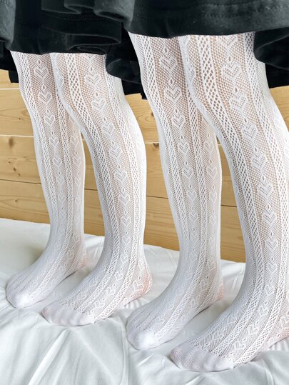 2pairs Toddler Girls Heart Pattern Tights - White - View 1