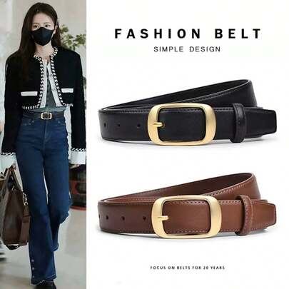 2pcs/1pc Women's Alloy Small Square Buckle PU Leather Belt, Minimalist & Fashionable, Suitable For Jeans, Trousers, Coats, Dresses - Square Buckle Belt - View 1