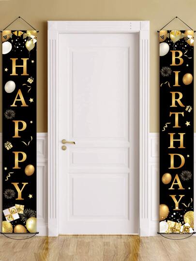 2pcs Balloon & Slogan Graphic Background Cloth - Multicolor - View 1