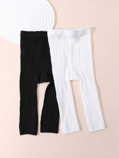 2pcs Black & White Children's Leggings, Snug Fit Ankle-Length Pants, Dance Tights - Multicolor - View 1