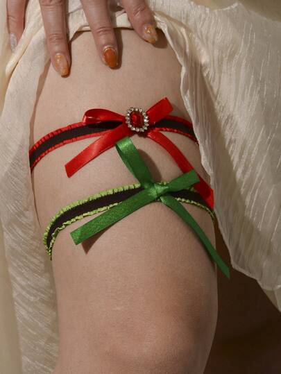 2pcs Bowknot Leg Garters, Retro Bowknot & Ruffle Leg Chain, Popular For Women - Butterfly Leg Ring - View 1