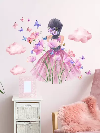 2pcs Butterfly & Figure Graphic Wall Sticker - Multicolor - View 1