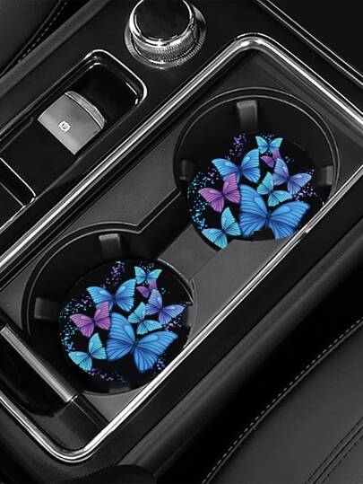 2pcs Butterfly Pattern Car Coaster - Black and White - View 1