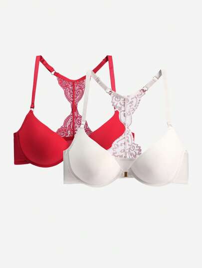 2pcs Contrast Lace Underwire Bra - Multicolor - View 1