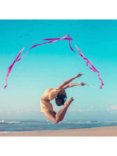 2pcs Dance Ribbons, 2m Kids Long Gymnastics Ribbon Twirling Ribbons Dancing Ribbon Streamers For Artistic Dance Training Party, With Ribbon Dancer Wand (Rose Red) - Multicolor - View 8