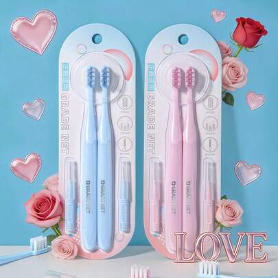 2pcs Dental Care Set - Includes Soft Bristle Toothbrush And Floss Friendly Interdental Brushes, Essential Tools For Cleaning Teeth, Braces, And Oral Care, Suitable For Adults And Couples, Great For Valentine's Day - Multicolor - View 9