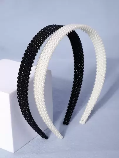 2pcs Fashion Faux Pearl Black & White Headband, Suitable For Everyday Wear Hairband Hair Hoop Hair Accessories Head Accessories - Black and White - View 1