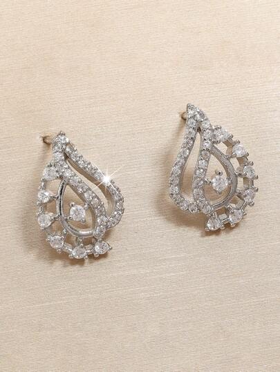 2pcs Fashionable Cubic Zirconia & Leaf Decor Stud Earrings Suitable For Ladies' Everyday Wear - Silver - View 1