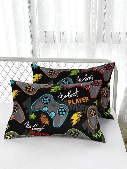2pcs Gamepad Pattern Lumbar Pillow Cover Without Filler, Modern Fabric Decorative Throw Pillow Cover For Home - Multicolor - View 1