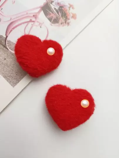 2pcs Girls' Hair Clips Set,  Gifts For Mom And Daughter, Pearl Plush Heart Shaped Hair Barrettes With Clip Edge For Sweet And Cute Girls' Hair Accessories - Red - View 1