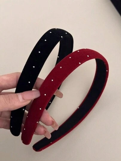 2pcs Headband For Women, Versatile High-Quality Christmas Red Hairband With Rhinestones, Retro Style ,Hair Hoop Hair Accessories Head Accessories - Multicolor - View 1