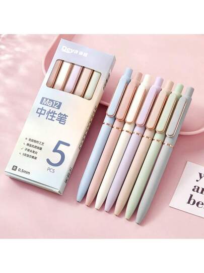 2pcs High-Aesthetic Click-Action Gel Pens And A Custom Logo - Morandi - Color, 0.5mm Bullet-Tipped Metal Advertising Pens Back To School - Multicolor - View 5
