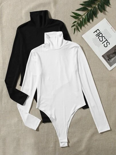 2pcs High Neck Tee Bodysuit - Black and White - View 2