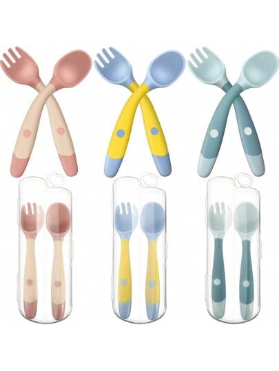 2pcs Kids Cutlery Set With Storage Box, Silicone Soft Bendable Spoon, Baby Feeding Tableware, Cute Infant Dinnerware - Multicolor 1 - View 6